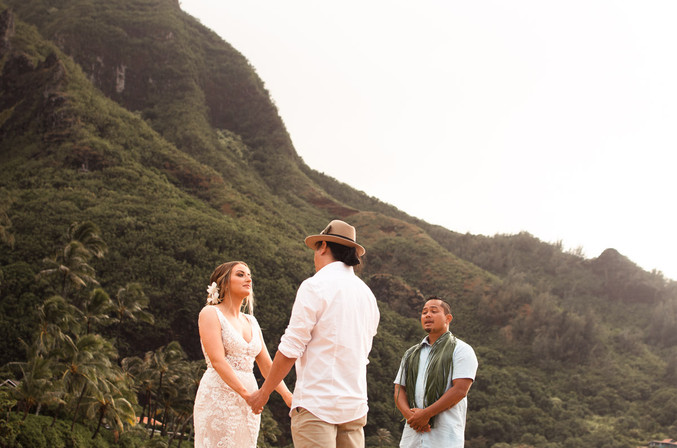 We caravanned through downpour and prayed for the rain to slow, from Hanalei to Ha'ena. As we parked, the rain had begun to clear. The rains had kept the beach empty, and we were gifted intimacy for the ceremony. AoKai led a touching and meaningful ceremony. Fully embracing the land and union of Caitlin and Santino.
